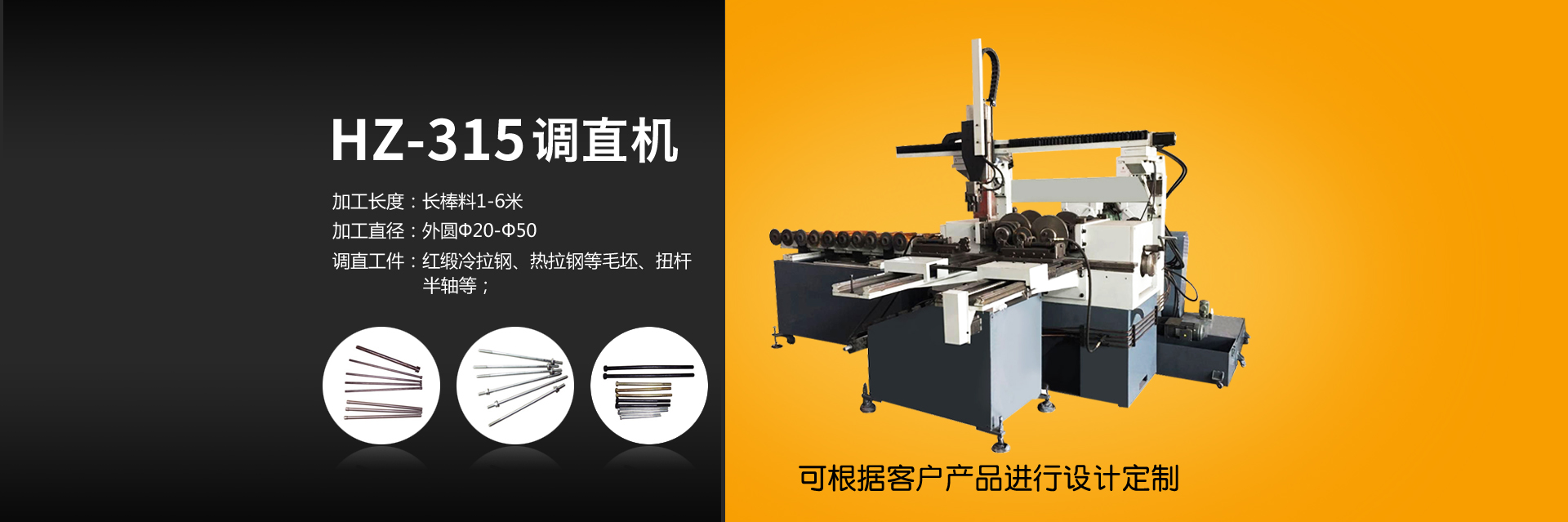 調(diào)直機(jī)專(zhuān)用于圓棒料毛坯或熱處理變形材料,通過(guò)雙曲線原理進(jìn)行擠壓達(dá)到調(diào)直效果。